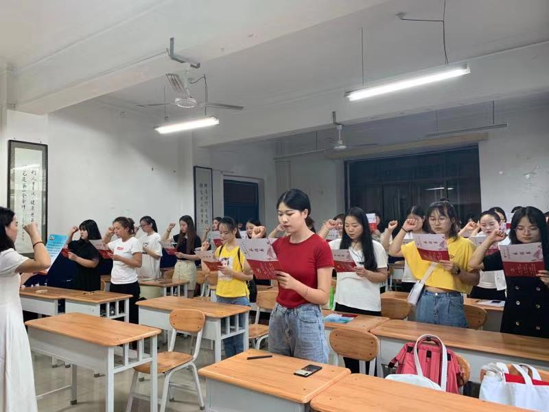 7月8日,护理学院学生党支部开展毕业生党员承诺签字党日活动,重温入党誓词,郑重承诺签字。