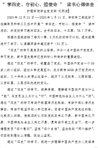 根据陕西能源职业技术学院《关于在辅导员和学工队伍中开展“学四史、守初心、担使命”读书活动的通知》(陕能院学办〔2020〕41号)文件精神,护理学院学工党支部制定了《“学四史、守初心、担使命”读书活动实施方案》。2020年12月21日-2021年1月8日,学工党支部组织开展了“学四史、守初心、担使命”系列专题读书活动。