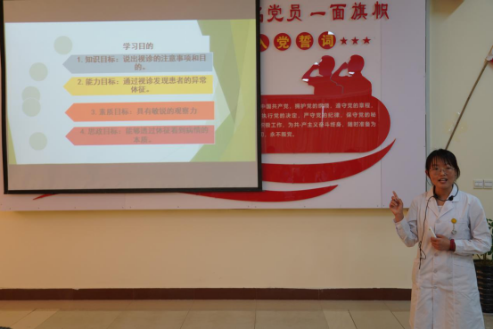 首先护理学院党总支副书记、院长仵卫民介绍本次大赛组织及筹备情况。经过前期教工党支部和学工党支部自主开展“课程思政”小课堂练兵,择优推出7名选手参与课堂展示。
