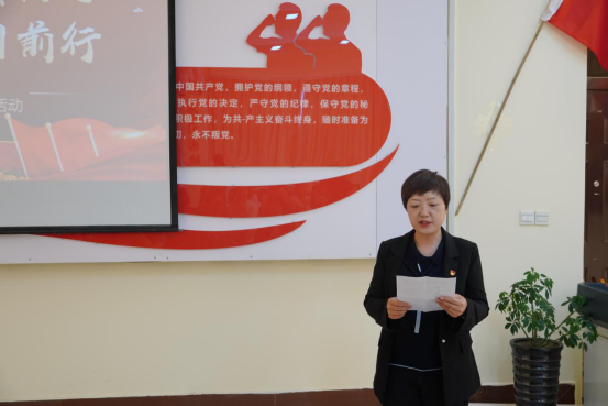 接下来由王瑜同志领誓,带领支部全体党员在党旗下重温入党誓词,回忆入党过程,接受灵魂洗礼,感受信念升华。
