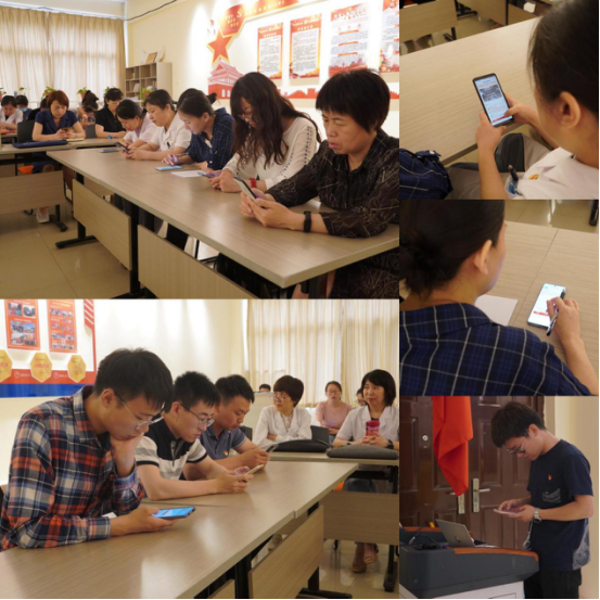 前期,护理学院党总支要求全体教职工认真学习“四史”、积极备赛,并以党支部为单位层层选拔,最终推选出王亚妮、刘丽、刘寒森、李娟、赵婷、倪国斌、李世奇、雷东强、赵晨等9位老师进入护理学院党总支“四史”竞答擂台赛。此次竞答擂台赛依托中国大学生在线微信公众号“四史”问答栏目,参赛老师进行“英雄篇”、“复兴篇”、“创新篇”和“信念篇”四个板块在线答题,同时,答题界面同步投屏到多媒体屏幕上,全体教职工集体观摩答题情况。
