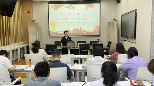 2022年6月8日下午,护理学院党总支书记王瑜在临潼校区教师发展中心以《守初心 强信仰 勇担当——教师在意识形态工作中的责任与使命》为题,为全体教职工讲授了一节生动地专题党课。