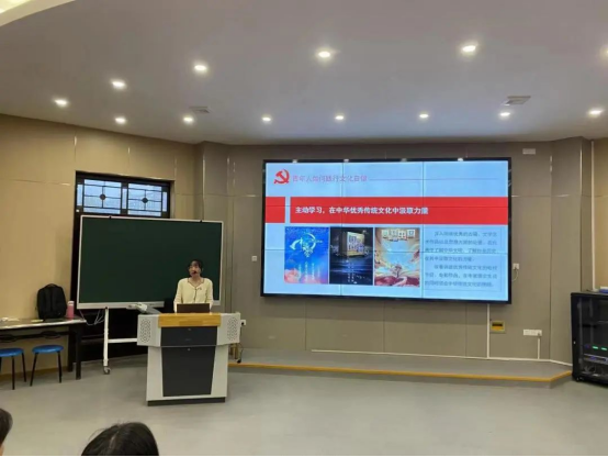 4月27日,护理学院辅导员王嫒璐向全院入党积极分子、预备党员做了题为《为文化自信注入青春力量》的微党课。