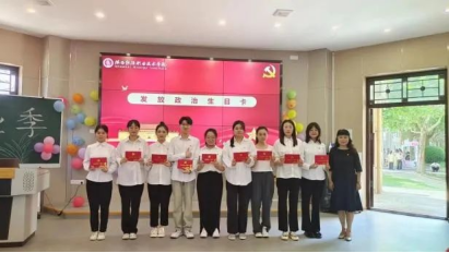 活动在庄严雄壮的国歌声中拉开帷幕。学工党支部书记陈小红同志宣读校党委批复及学生党员名单。