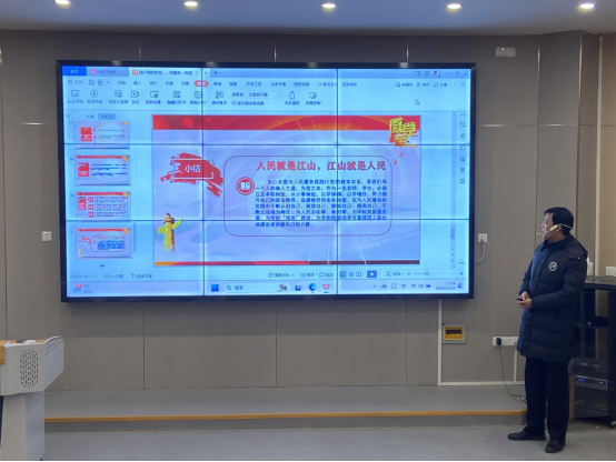 党课开始,房朋同志以“什么是人民?”为讨论话题,引出中国共产党党徽的历史来源,并以张思德为人物原型代表,围绕“为人民服务的由来”“为人民服务的发展”“如何做好为人民服务”等方面,引领大家以“真心”干工作、用“主动”做服务,凭“本领”办实事,积极践行党的宗旨。