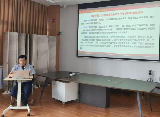 为进一步提升党组织的凝聚力,进一步营造学纪、知纪、明纪、守纪的浓厚氛围,推动党纪学习教育走深走实,护理学院于2024年6月12日在临潼校区教师发展中心开展党总支书记讲授党纪学习教育专题党课活动。党总支书记房朋主讲,全体教师党员参加学习。