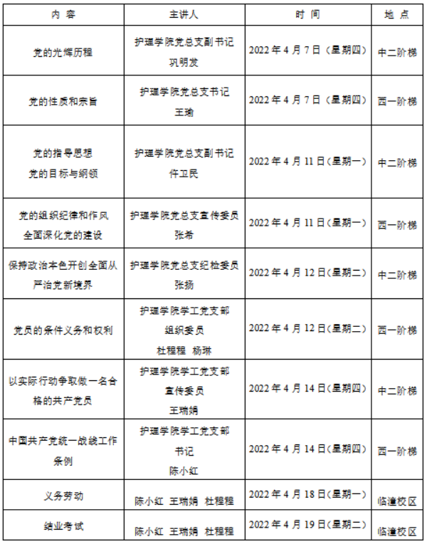 护理学院党总支根据课程安排,将在后续陆续开讲党课。