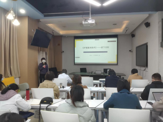 说课环节为刘旭莹《医学统计学》、杜程程《老年社会工作理论与实务》、李娟《护理基本技术》、张丽红《正常人体结构》四门课程的说课。四位老师说课环节完整,包含教学分析、教学组织、教学实施、教学反思,依据课程性质及内容展开说课,各具特色。刘旭莹说课思路清晰,依据学生特点进行针对性的课堂组织,并对后续参加教学能力比赛的老师们给出建议。杜程程说课内容详细,通俗易懂,导入环节获得好评。李娟老师说课内容为皮下注射技术,线上线下混合式、理实一体化教学,内容详细,充分发挥学生主观能动性。张丽红老师说课内容包含正常人体结构的常用术语,用画图的形式增加学生对知识的理解。