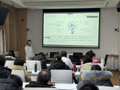 本次活动分为导学、说课两个环节。导学部分由护理学院副院长张扬分享新加坡研学经验,结合在新加坡的访学经历,从“新加坡印象”和“新加坡职业教育的特点模式”两个方面分享了新加坡访学过程中的所见所闻所感,并向大家介绍了新加坡新颖的教育理念。