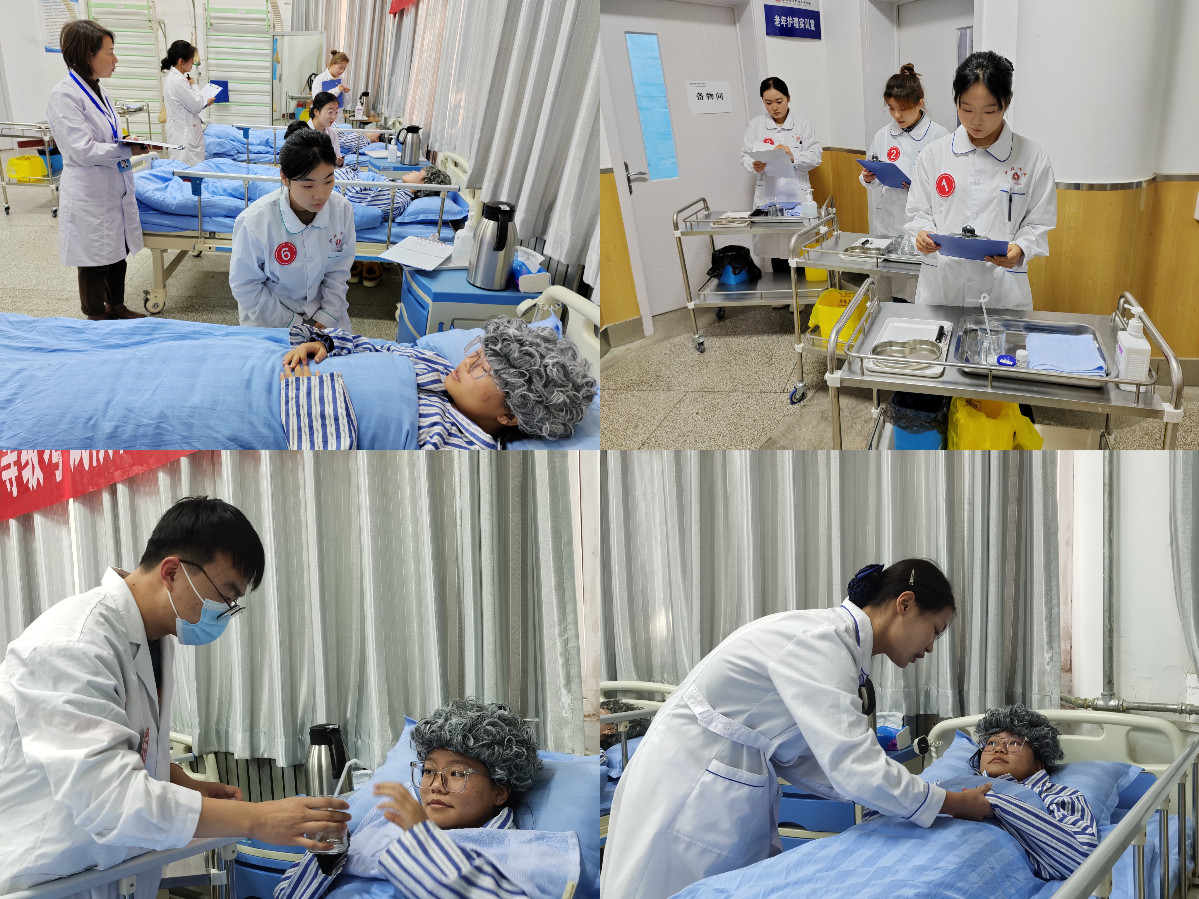 本次考核分理论考试和实操考试两个板块,理论考试分为理论基础知识和实操案例分析两部分。实操考试是考生根据案例和SP病人具体情况,在解决老年人心理问题的基础上完成规定的工作任务。通过这两个模块的考核全面检验了我校学生的理论知识水平和实际照护能力。