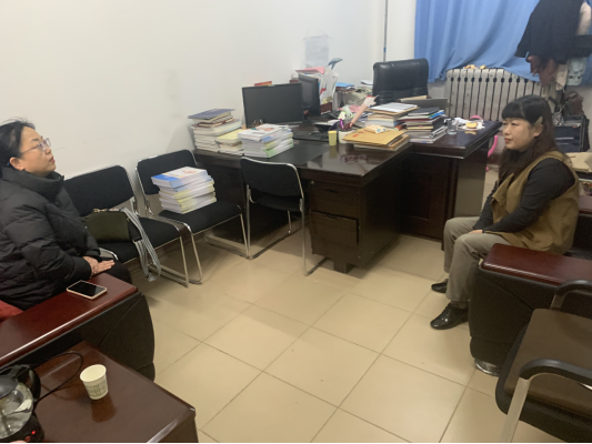 护理学院院长仵卫民与第三爱心护理院副院长周彩云洽谈