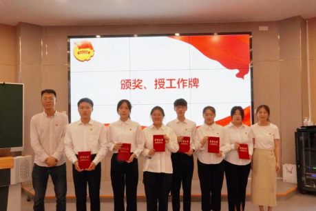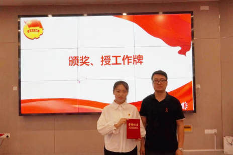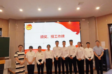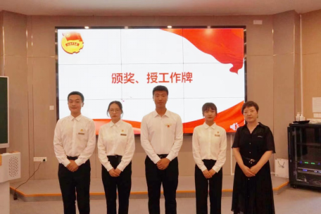 随后,陈小红老师宣读了《护理学院团委关于对2021-2022学年优秀团学部门及团学负责人的表彰决定》,对上学年表现突出的团学部门及个人进行了表彰,随后,团委书记杜程程在大会上宣读了新一届团委学生会干部名单,并为他们佩戴了光荣的学生干部工作牌。
