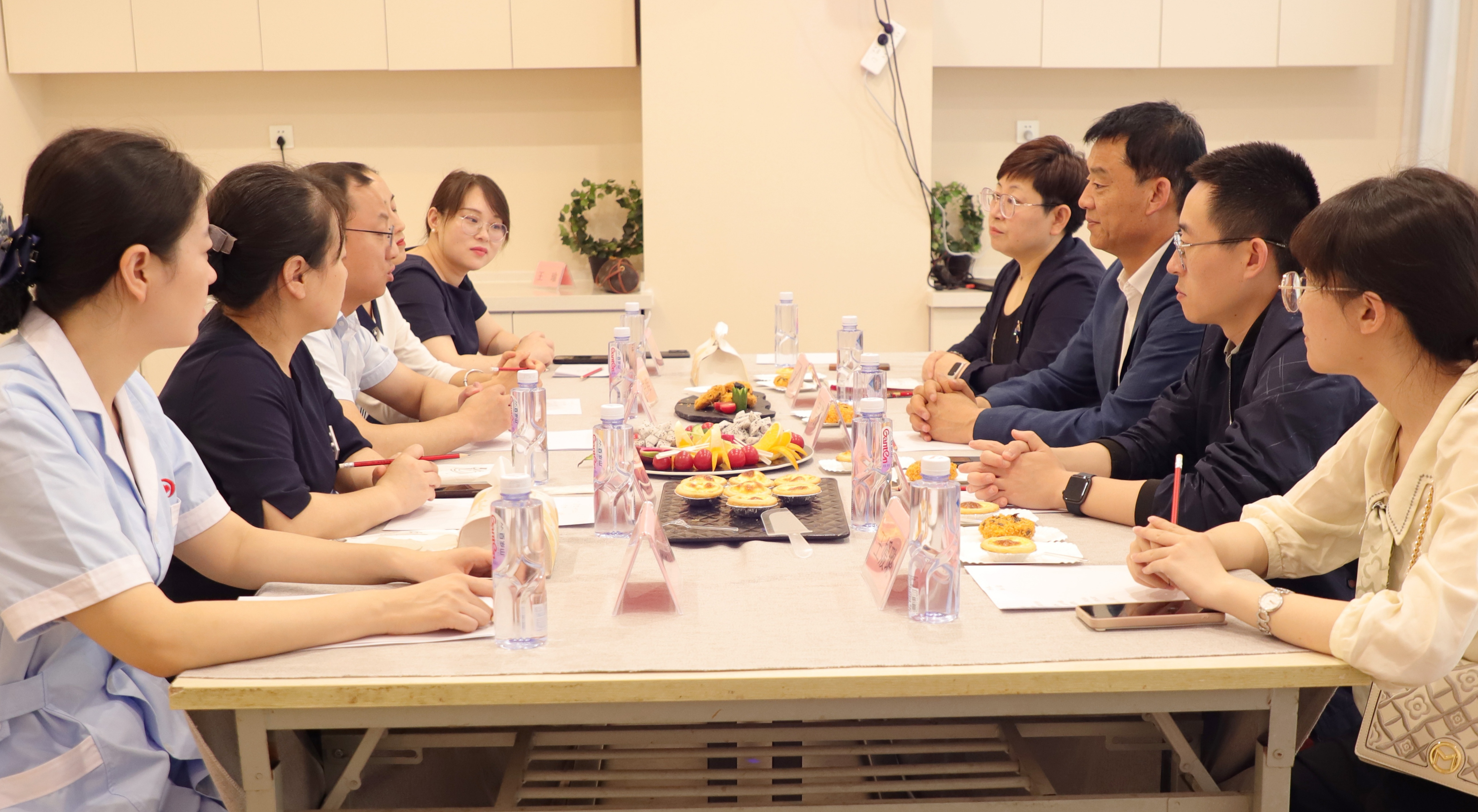座谈会上,姚世勇对护理学院一行人的来访表示热烈欢迎与感谢。王兰维详细介绍了公司基本情况、发展规划及员工职业发展规划。她表示,母婴护理是一项需要高度专业知识和丰富经验的工作,月子中心不同于其他服务行业,更需要专业的人才来服务产妇、新生儿。安心妈妈月子中心作为西北早期设立的专业母婴护理连锁机构,16年来始终坚持以护理板块为核心,坚持专业沉淀,以专业的高标准服务打造行业内的高品质服务标杆。