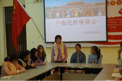 护理学院现有少数民族学生63人,涵盖了藏族、回族、蒙古族、侗族、土族等9个民族。我院高度重视少数民族学生的教育和管理工作,通过此次座谈会,营造了积极和谐的民族文化交融氛围,推动了民族大团结,帮助少数民族学生健康成长。