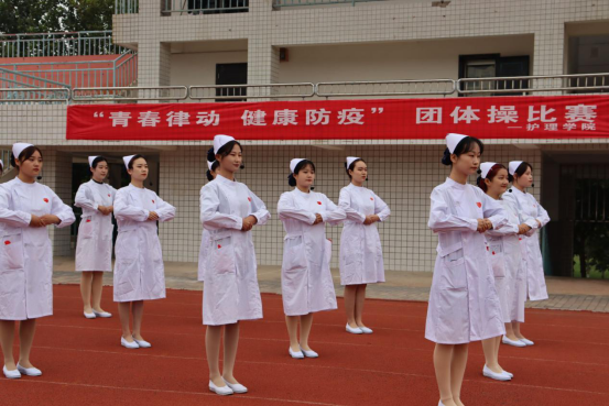 为增强学生体质,引导学生健康防疫,促进学生身心健康,丰富校园文化生活,值喜迎国庆中秋双节之际,护理学院于9月28日下午四点在临潼校区操场举办“青春律动,健康防疫”团体操大赛,护理学院党总支副书记巩明发、护理学院学工办主任陈小红以及全体辅导员和19级全体学生参加本次大赛。