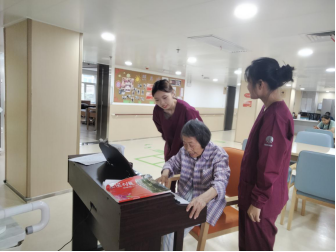 7月23日7:50,我们在带教老师的带领下开始晨间查房。一进房间,爷爷奶奶们见到我们来了,都开心地笑眯眯地看着我们,我们也被他们感染了,很快就和爷爷奶奶们熟悉起来。整个医养院也像一束绽放的花儿一样充满了无限的生机与活力。带教老师告诉我们,这里住的爷爷奶奶很多都是多才多艺,素养极高呢!是吗?我们半信半疑。听到有人唱歌,我们顺着声音走过去,原来是位奶奶在练习唱歌。见我们来了,奶奶专门唱了一首《军中绿花》送给我们,这让我们都非常感动。随后我们又看望了其他的爷爷奶奶。这些爷爷奶奶,他们年事已高,几乎每个人都身患慢性病,但是他们依旧不忘学习来充实自己的生活。有学唱歌的,有学练书法的,还都很爱看书,真的是值得我们敬佩和学习。