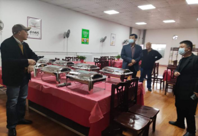 校党委副书记任向明(左一)检查临潼教工餐厅
