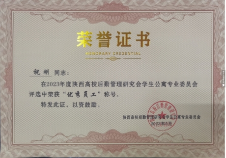 5月26日,陕西高校学生公寓专业委员会2023年年会暨学生公寓工作表彰会在西安召开。会议对全省高校学生公寓管理工作进行了总结和表彰,我校公寓管理科获评“先进集体”,这也是我校连续三年获此殊荣;何利荣获陕西高校学生公寓“服务标兵”、祝刚荣获陕西高校学生公寓“优秀员工”。