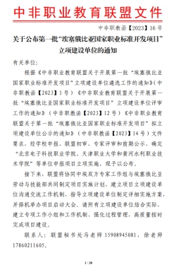 4月25日,中非职业教育联盟发布《关于公布第一批“埃塞俄比亚国家职业标准开发项目”立项建设单位的通知》,我校药学专业成为第一批立项建设单位,成功立项“药学技术员/工程师”Ⅲ级国家职业标准开发项目。