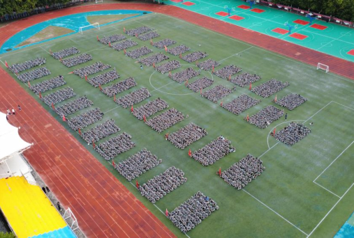 在嘹亮的国歌声中,开学典礼暨军训闭营仪式拉开帷幕。
