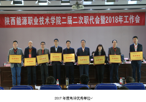 在2018年工作会上,副校长赵新法宣读了《关于表彰2017年度考评优秀单位和优秀个人的通知》,校领导为各考评优秀单位颁发奖牌。