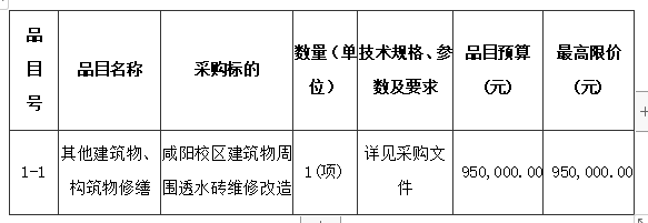 项目名称:咸阳校区建筑物周围透水砖维修改造工程项目