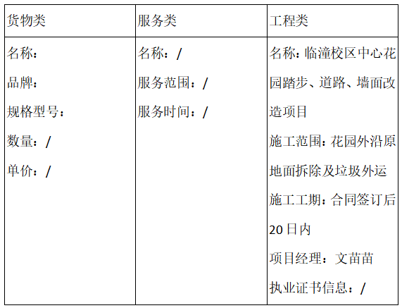 一、项目名称:临潼校区中心花园踏步、道路、墙面改造项目