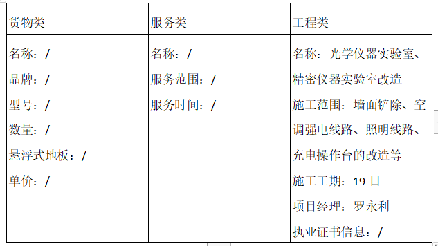 一、项目名称:光学仪器实验室、精密仪器实验室改造