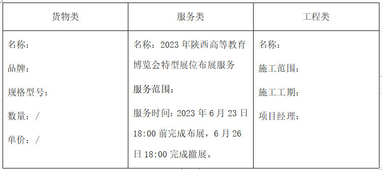 一、项目名称:2023年陕西高等教育博览会特型展位布展服务