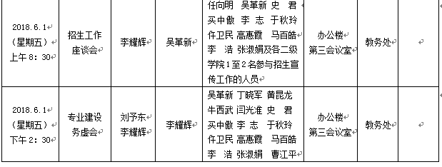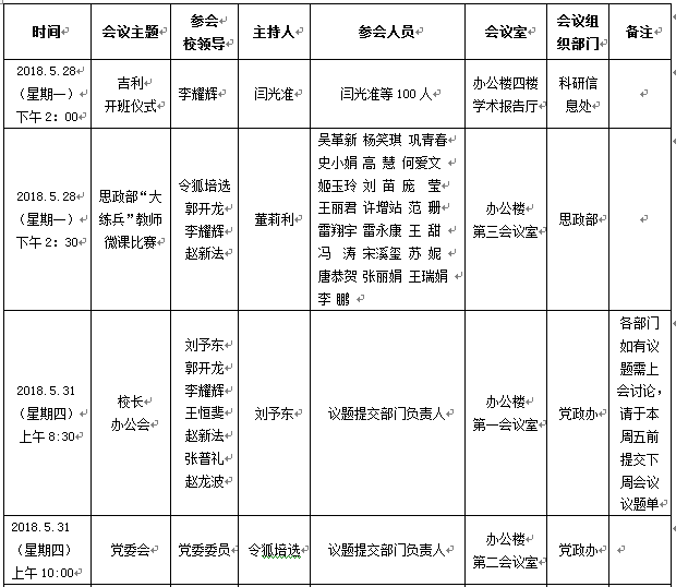2018年5月28日至6月1日(第13周)会议安排预通知