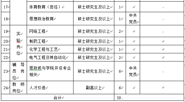 6.人才引进:具有全日制本科及以上学历学位,所学专业能满足学院目前所开设专业教学需要,本专业副高及以上专业技术职称,年龄不超过40周岁(正高职称年龄可适当放宽)。具有较强的语言文字表达能力和科研创新能力。