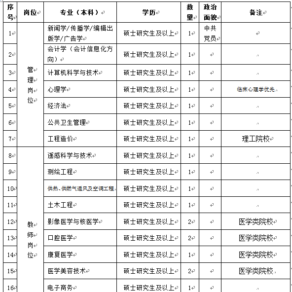 注:具有博士学历学位人员不受以上指标限制,所学专业与学院所开设专业相同的人员可优先录用。