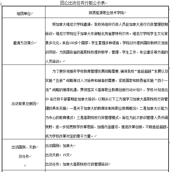 因公出访任务行前公示表