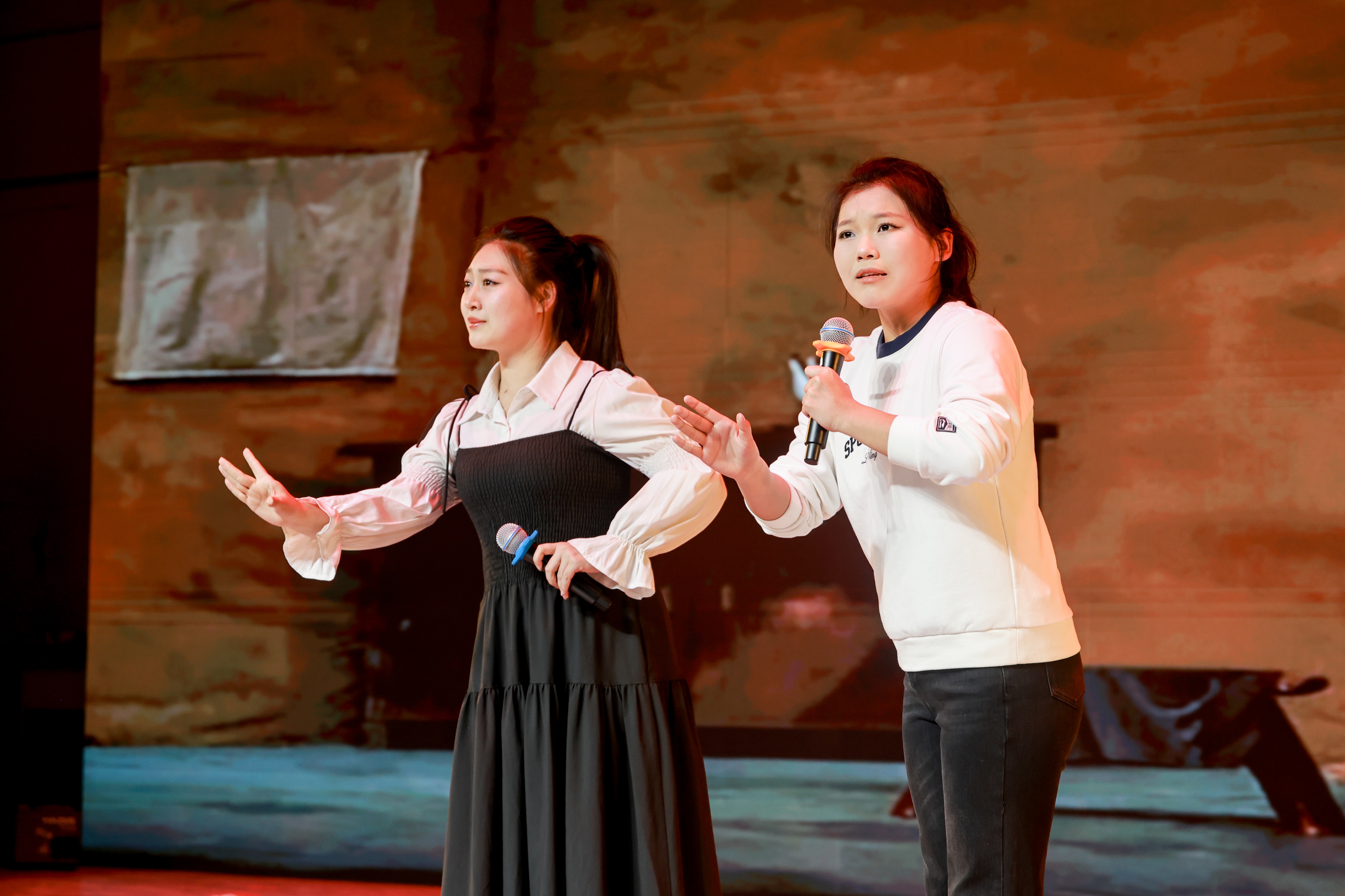 第四篇章“同心筑梦・向未来”将晚会推向高潮。陕西艺术职业学院带来的民族舞《石榴花开》,舞姿优美、寓意深远,象征着各民族像石榴籽一样紧紧相拥,彰显了民族团结的深厚情谊;戏曲《变脸》如魔术般瞬息幻化,一张张脸谱在转身拂袖间悄然更迭,技艺精绝,掌声不息,生动展现了非物质文化遗产的深厚底蕴;随后的歌曲联唱以青春之声串联经典旋律,音符跃动间洋溢着团结与憧憬,唱出了能院学子同心向前、共赴未来的明亮心声;最后,晚会在温馨而充满力量的尾声中圆满落下帷幕。