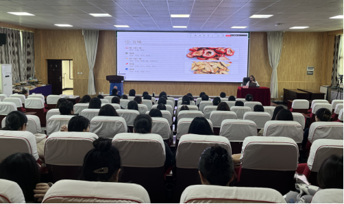来自护理学院的俞菲老师结合自身医疗及教学实践以《三尺讲台守初心,食疗养生护芳华——舌尖上的养生方法》为题开展中医保健讲座。她首先阐述了中医饮食养生的核心原则,即顺应时节变化,掌握饮食之道;接着她分析了女教师的职业特点,解读了女性教师的健康密码;最后她给出了女教师身体常见问题的解决方案并提供了安全、实用的食养方。讲座内容既有中医理论,又有生活妙招,大家收获满满。女老师们纷纷表示掌握了一些简单、实用、能坚持的养生方法,会在今后的生活中,多一份养生意识,多一份身心呵护,以健康的体魄、饱满的热情、乐观的心态,在工作中绽放风采,在生活中收获幸福。