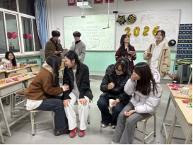 教室内暖意融融,处处洋溢着青春的活力与节日的喜悦。在展演环节,各类节目精彩纷呈,既有歌曲串烧、现代舞、小品等经典节目点燃现场气氛,更有融合专业特色的创意表演惊艳全场-短视频剪辑秀串联起班级年度成长瞬间,商务礼仪情景剧再现职场沟通场景,充分彰显了我院学子“学用结合、知行合一”的实践能力。在猜谜语、听歌识曲、抢凳竞技、你画我猜等趣味游戏互动环节中,师生协作、同学组队,欢呼声与加油声此起彼伏;最后,班主任送上的新年寄语温情恳切,既肯定了同学们过去一年的成长与进步,也寄予了对未来学业精进、技能提升的殷切期望。