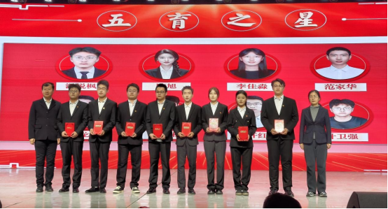 晚会设置“煤亮子” 优秀师生表彰环节。能源化工学院党总支副书记张继军致表彰辞,号召全体师生向先进学习。党总支书记陶燕、院长李炜怿为育人楷模颁奖,副院长陈辉、周少丽为 “五育之星” 获奖学生颁奖。