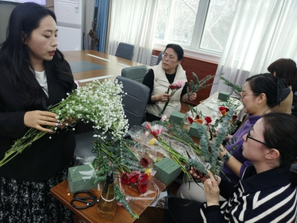 随后的创意插花活动现场花香四溢、暖意融融。学院提前准备了玫瑰、康乃馨、洋桔梗、尤加利叶等各色鲜花与花艺工具,邀请了专业插花老师现场教学。老师从花材选择、色彩搭配到造型设计,花艺老师进行了细致讲解和示范。在花艺老师的指导下,女职工们发挥创意,亲手制作出一个个独具匠心的插花作品,在感受美、欣赏美、创造美的过程中,度过了一个温馨而有意义的节日。活动最后,学院还为每位女职工准备了两提纸巾作为节日慰问品,传递了组织对女职工们的关怀与祝福。