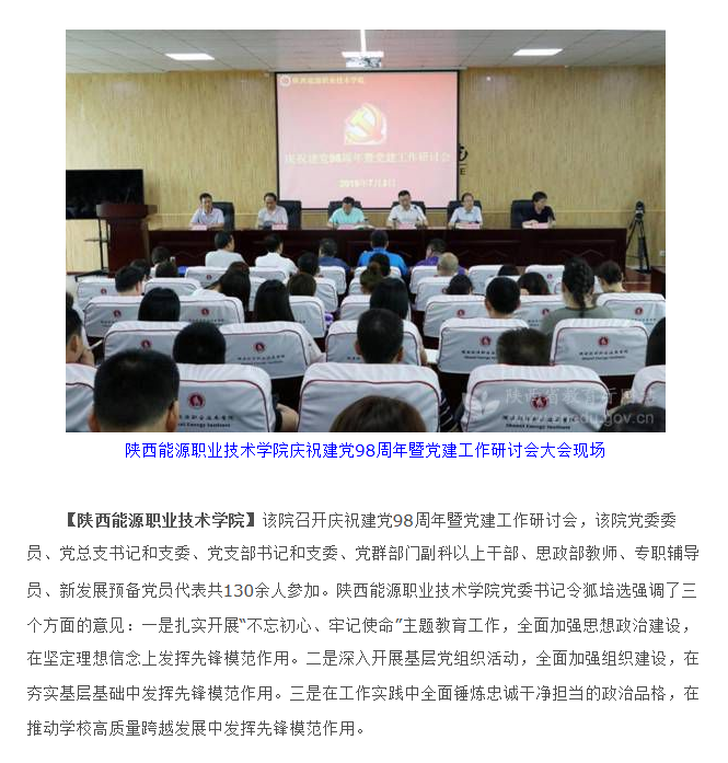 上一篇:华商头条、 网易、华商网:陕西能源职业技术学院召开庆祝建党98周年暨党建工作研讨会