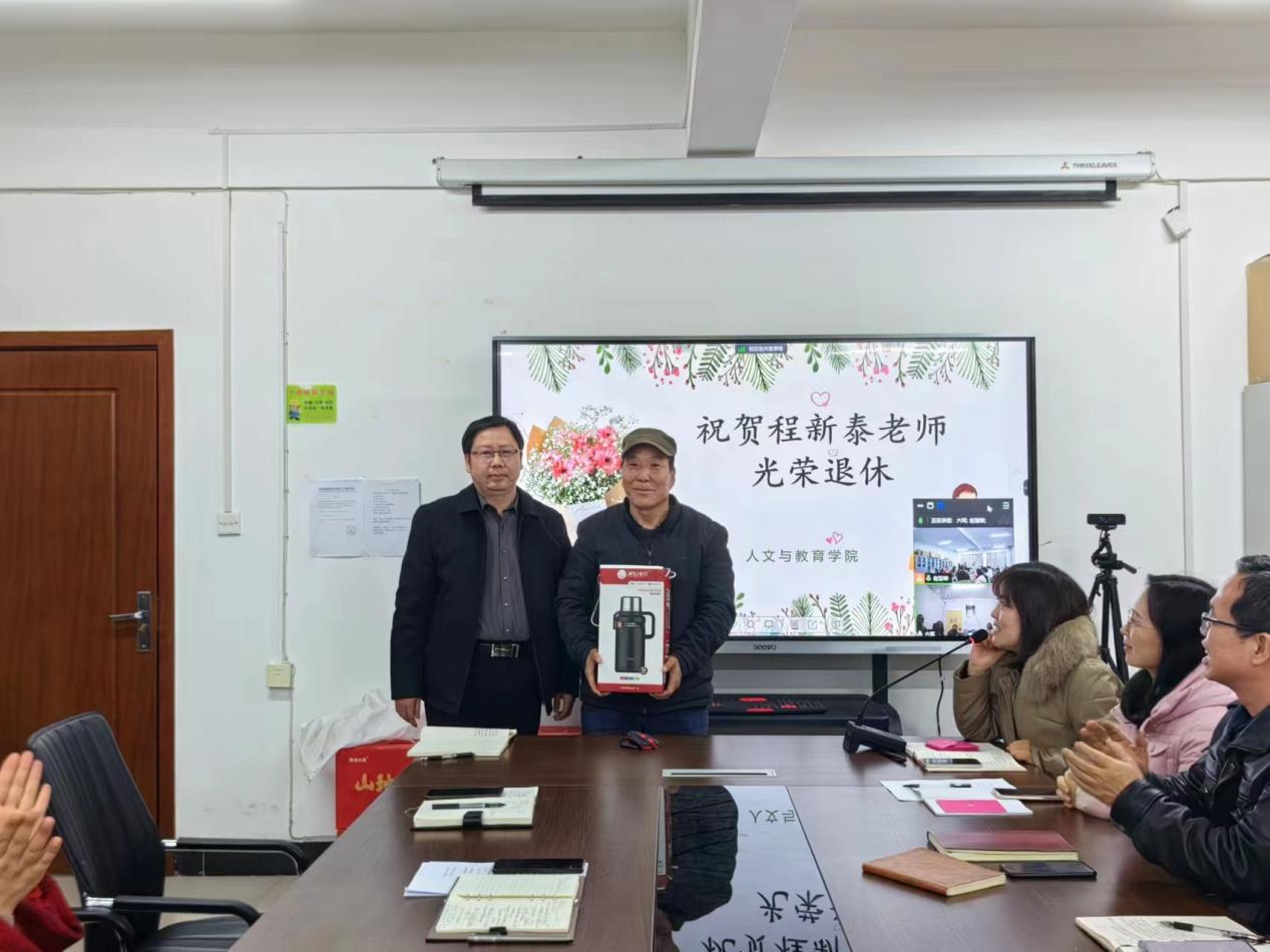 紧接着,我们精心策划了一场温馨而特别的欢送会,为即将退休的老教师程新泰送上祝福与感谢。我院党总支书记买中傲为程老师送上了慰问品和书法作品,回顾了程老师三十年如一日的辛勤付出,赞扬了他无私奉献、爱岗敬业的精神。
