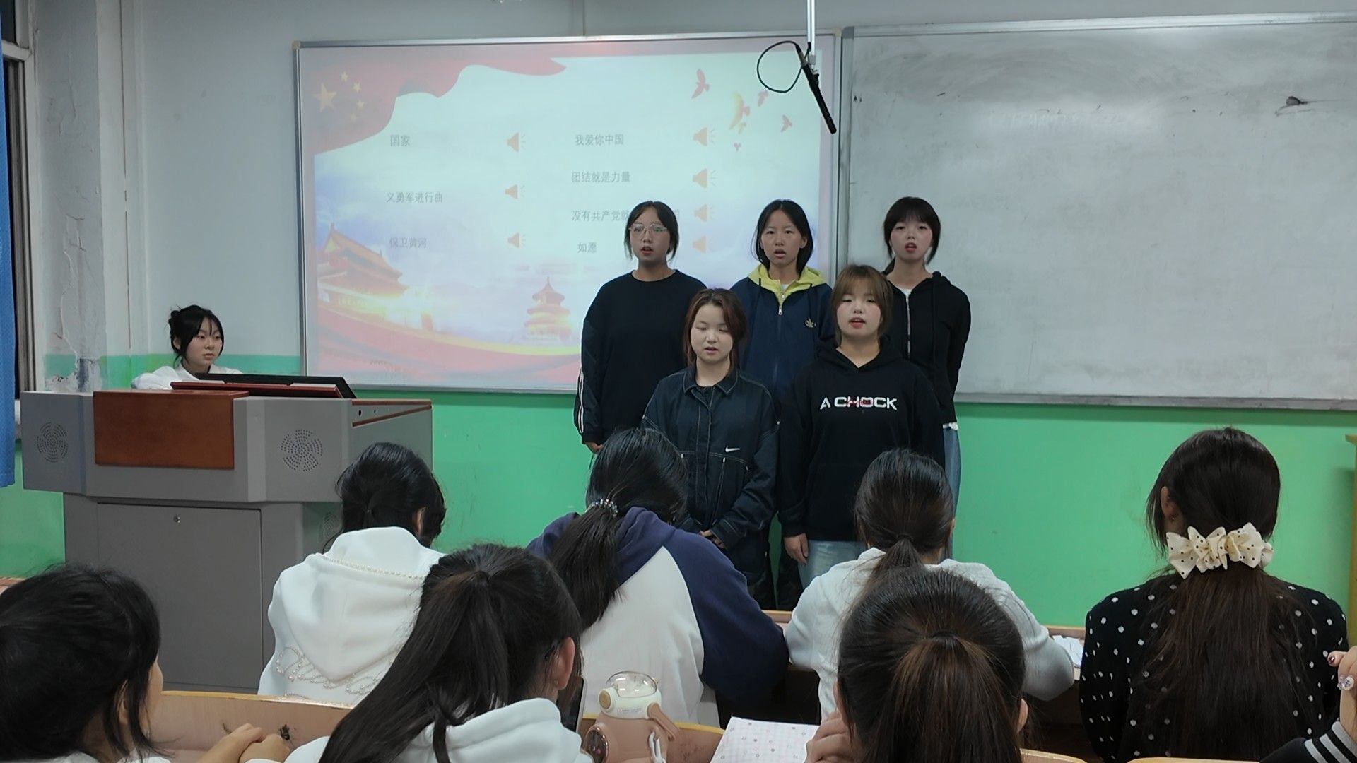 9月28日,“传唱红色经典,厚植爱国情怀”主题红歌活动在教学楼713教室温情上演。《我和我的祖国》、《黄河大合唱》等一首首耳熟能详的红色经典曲目轮番唱响。各班级队伍以饱满的热情、嘹亮的歌声,通过合唱、独唱等多种形式,深情演绎着对祖国的无限热爱与美好祝福,将现场的爱国氛围推向高潮。