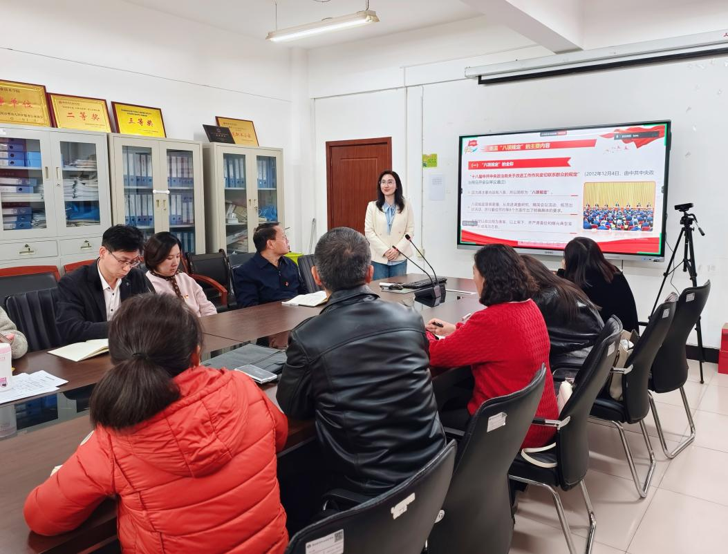 专题辅导主要围绕“重温中央八项规定的主要内容“、“违反中央八项规定精神的具体表现”、“违反规定适用的相关党纪条规”和“坚定不移、锲而不舍落实好中央八项规定精神”四个方面对中央八项规定精神及其实施细则进行全面系统的梳理。教育引导支部党员干部准确把握、深刻理解中央八项规定精神,强调以此次学习教育为新的起点,不断加强自身建设,提高党性修养,严守党的纪律和规矩,做到清正廉洁、勤政务实,以实际行动树立党员的良好形象。