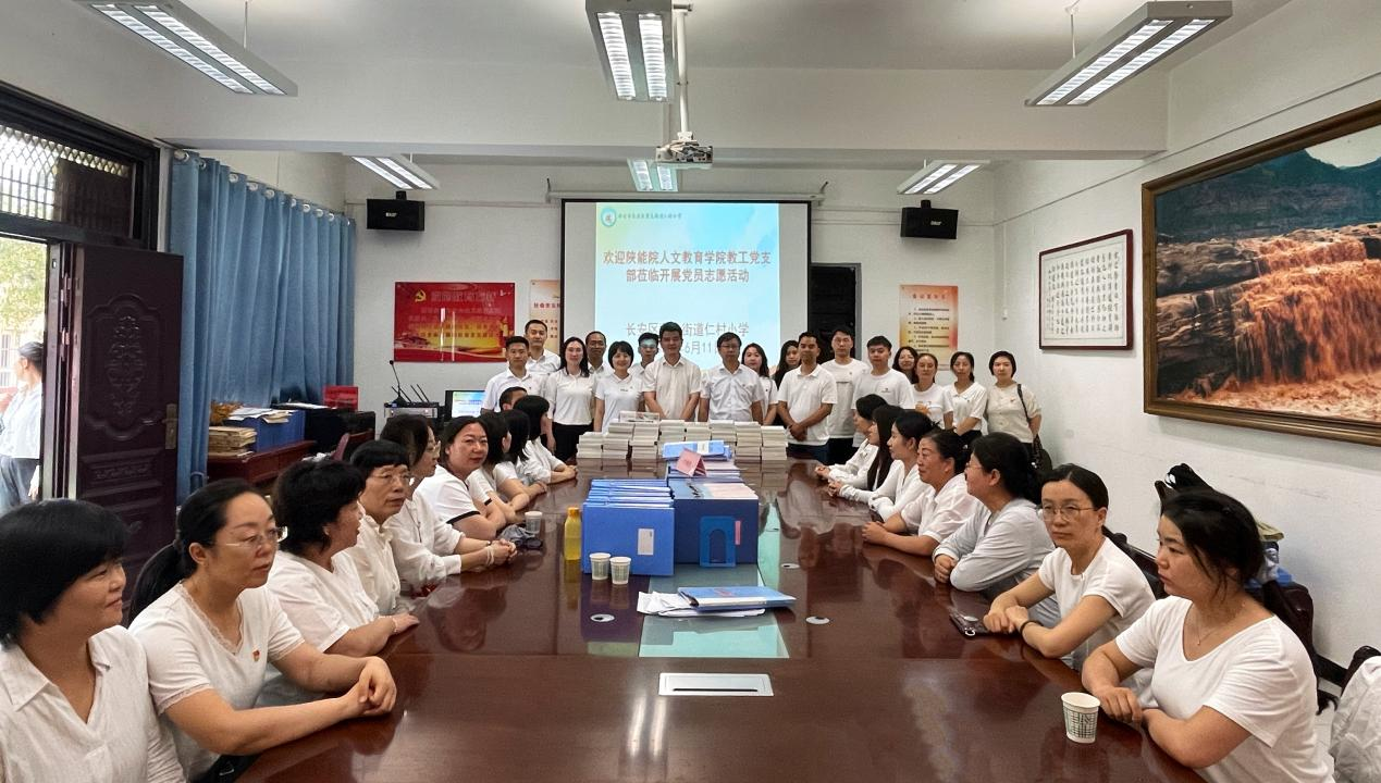 在长安区黄良街道仁村小学,教工支部党员通过实地走访,了解学校的办学环境、基础设施建设、教育教学特色等情况,同时带着为孩子们精心准备的文具和小礼物,面向三、四、五年级学生开展了语、数、英、美育及党史小故事微课堂志愿服务活动。大家利用提前准备好的图片、视频、手工材料等生动有趣地进行知识辅导,孩子们的热情与活跃的课堂气氛,受到了仁村小学张校长和老师们对授课党员们的高度赞扬。在会议室,支部党员围绕“如何以党建引领师德师风建设”、“课程思政与党建融合创新”等议题,结合学科特色开展“红色文化融入课程思政”现场交流研讨,通过实践强化党员服务意识,扩大党建辐射力。