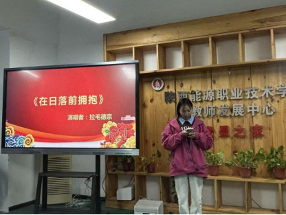 座谈会最后,来自青海的藏族同学电商2501拉毛德宗带来原生态歌曲《在日落前拥抱》演唱,悠扬歌声传递出深厚民族情感,赢得阵阵掌声。
