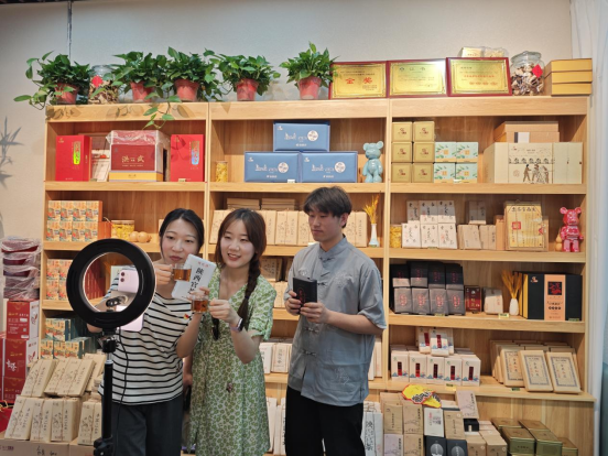 在这里,经管学院电子商务专业教师与学生共同开展了一场“茯茶直播”,希望能够将丝路上的‘黑黄金’——泾阳茯砖茶”介绍给更多人认识,通过线上线下联合发力,帮助茯茶走出陕西走向全国。