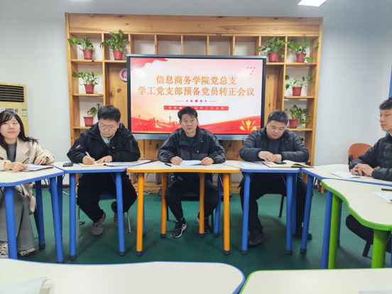 信息商务学院党总支副书记陈强作总结讲话,首先对夏心雨等3名同志顺利转为正式党员表示祝贺,并对她们提出了新的要求和殷切期望。他强调,成为正式党员是新的起点,而非终点,全体新党员要始终以党员的高标准严格要求自己,持续加强理论学习,提升政治素养;要正视自身不足,虚心接受意见,不断改进作风,以实际行动践行党员的责任与担当。