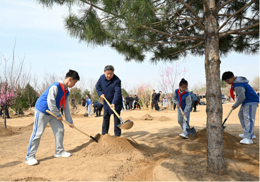 新华社北京4月3日电 中共中央总书记、国家主席、中央军委主席习近平3日上午在参加首都义务植树活动时强调,植树造林是生态文明建设重要一环。各地区各部门要进一步行动起来,动员组织广大干部群众积极参与造林绿化,践行绿色发展理念,弘扬生态文化,汇聚共建美丽中国的磅礴力量,让祖国大地更加绿意盎然、生机勃发。