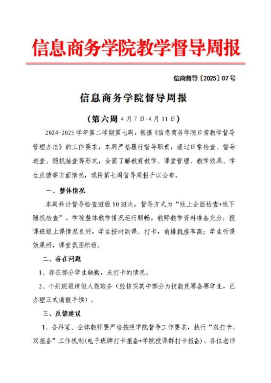 信息商务学院第七周督导周报
