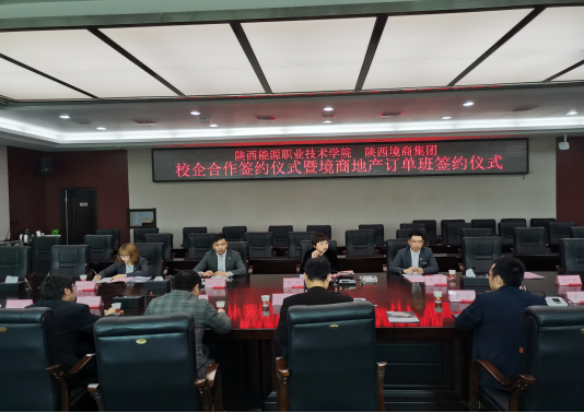 4月9日下午,我校与陕西境商集团校企合作签约仪式暨境商地产订单班签订仪式在办公楼第三会议室举行。陕西境商集团管理公司总经理徐天、人力资源中心总监陈晨、高新大区政委于辉、人力资源中心主管张利娜、人力资源中心校企负责人张喜莹;我校副校长赵新法、校企合作处以及建筑与测绘工程学院主要负责同志出席了签约仪式。