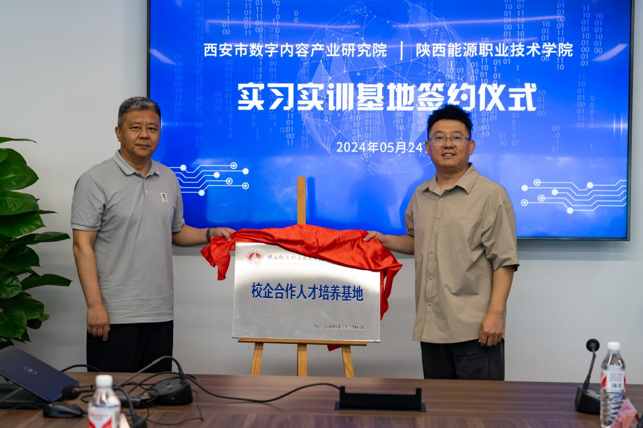 2024年5月24日,受我校副校长李耀辉委托,建筑与测绘工程学院党总支书记肖明宇、建筑艺术教研室主任李珊及综合办主任鬲亚蕾等人员,代表我校与西安市数字内容产业研究院进行了校企合作签约授牌仪式。